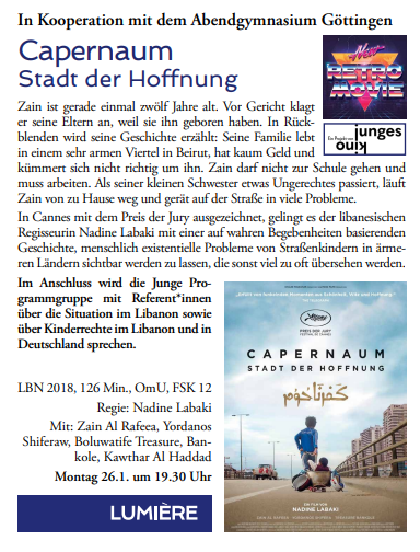 Die Junge Programmgruppe lädt herzlich zu der nächsten Filmveranstaltung am Montag, den 23. Februar um 19.30 Uhr ins Kino Lumière ein: